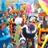 Para ejecutar la danza de los Chinelos, los danzantes colocan las manos en el pecho y dan saltos al ritmo de una banda de música que acompaña su desfile por las calles.